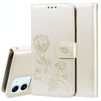 For iPhone 12 Rose Embossed Horizontal Flip PU Leather Case with Holder & Card Slots & Wallet(Gold)