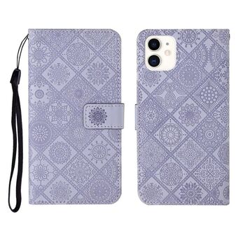 For iPhone 12 Ethnic Style Embossed Pattern Horizontal Flip Leather Case with Holder & Card Slots & Wallet & Lanyard(Purple)