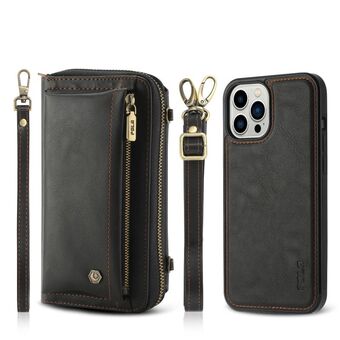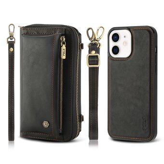 Θήκη τηλεφώνου από δέρμα, πολλαπλών λειτουργιών με φερμουάρ και λουρί για iPhone 12 Pro (Καφέ)