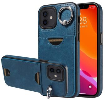 Θήκη τηλεφώνου για iPhone 12 / 12 Pro με υφή δέρματος μοσχαριού, υποδοχή κάρτας και δακτύλιο στήριξης (Μπλε)