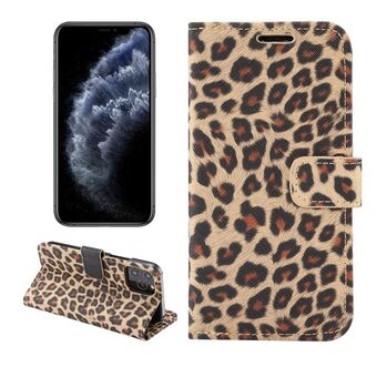 Θήκη δέρματος οριζόντιας αναδίπλωσης με σχέδιο λεοπάρδαλης για iPhone 12 / 12 Pro με υποδοχή κάρτας και βάση (Καφέ)