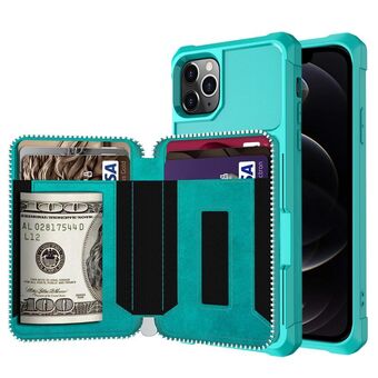 Για iPhone 12 / 12 Pro Θήκη Πορτοφολιού με Φερμουάρ και Κάρτες από PU Δέρμα (Μπλε)