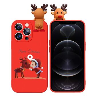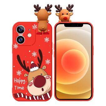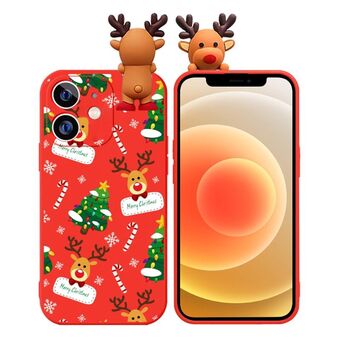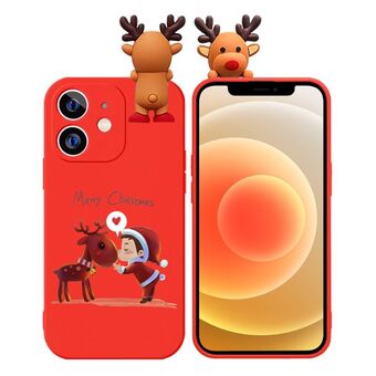 For iPhone 12 Colored Drawing Deer Relief Doll Soft TPU Phone Case(Christmas Tree and Deer)