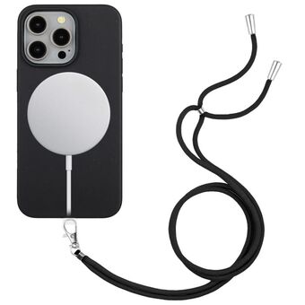 For iPhone 12 Pro Wheat MagSafe Magnetic Straw Material + TPU Phone Case with Lanyard(Black)
