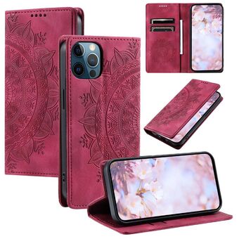 For iPhone 12 / 12 Pro Totem Embossed Magnetic Leather Phone Case(Red)