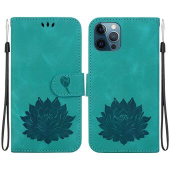 For iPhone 12 / 12 Pro Lotus Embossed Leather Phone Case(Green)