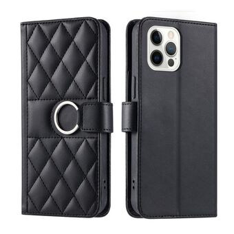 For iPhone 12 / 12 Pro Ring Buckle Rhombic Leather Phone Case(Black)