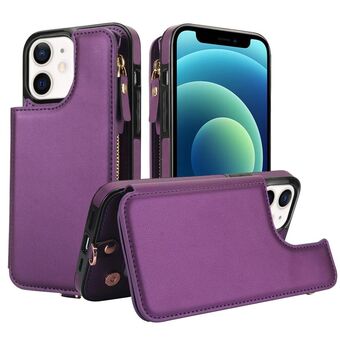 For iPhone 12 Double Flap Zipper RFID Leather Phone Case with Short Lanyard(Dark Purple)
