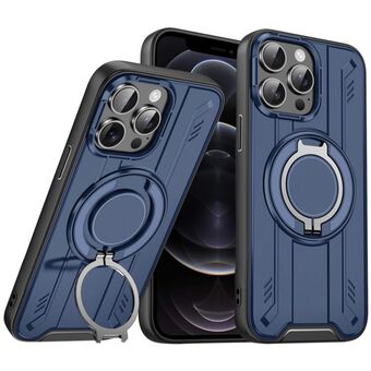 For iPhone 12 Pro Rotating Ring Holder Magnetic MagSafe Phone Case(Blue)