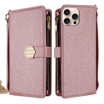 For iPhone 12 / 12 Pro Crossbody Strap RFID Blocking Zipper Wallet Leather Phone Case(Rose Gold)