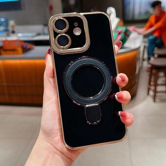 For iPhone 12 J3 Magsafe Frame Bracket Shockproof Phone Case(Black)