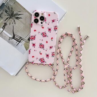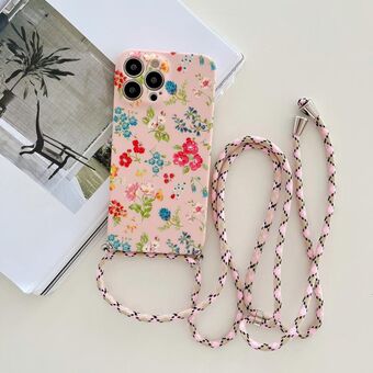 For iPhone 12 Lanyard Small Floral TPU Phone Case(Pink)