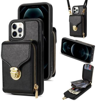 For iPhone 12 / 12 Pro Zipper RFID Card Slot Phone Case with Short Lanyard(Black)