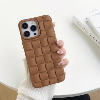 For iPhone 12 3D Cube Weave Texture Skin Feel Phone Case(Brown)