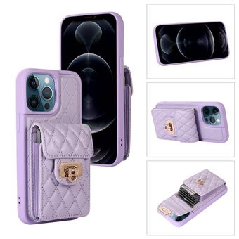 For iPhone 12 Zipper Card Bag Back Cover Phone Case(Purple)