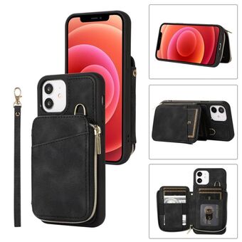For iPhone 12 Zipper Card Bag Back Cover Phone Case(Black)