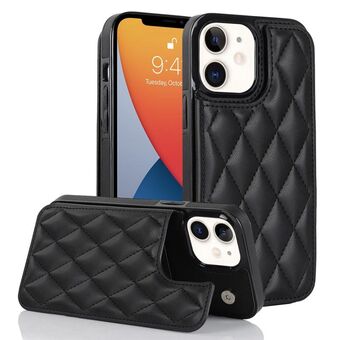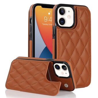 For iPhone 12 Double Buckle Rhombic PU Leather Phone Case(Brown)