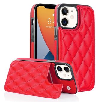 For iPhone 12 Double Buckle Rhombic PU Leather Phone Case(Red)