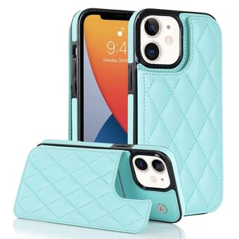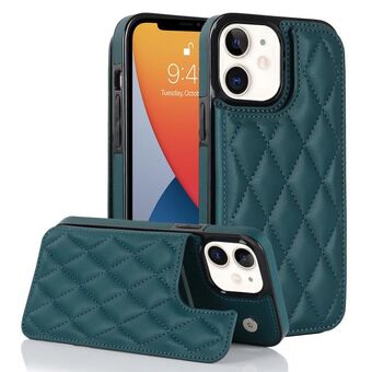 For iPhone 12 Double Buckle Rhombic PU Leather Phone Case(Green)