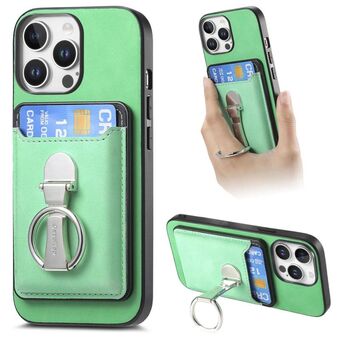 For iPhone 12 Pro Retro Folding Ring Holder Card Bag MagSafe Phone Case(Green)