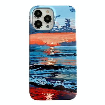 For iPhone 12 Pro 2 in 1 Detachable Oil Painting Sea Pattern Phone Case(Yellow Pink)