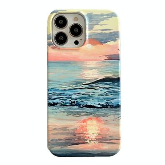 For iPhone 12 2 in 1 Detachable Oil Painting Sea Pattern Phone Case(Yellow Pink)