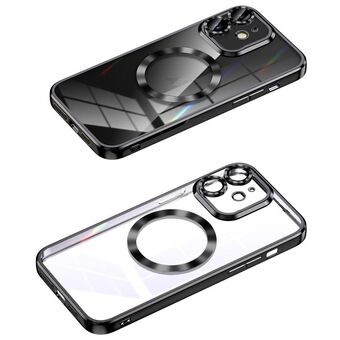 For iPhone 12 MagSafe CD Texture Metal Lens Frame Full Coverage Phone Case(Black)