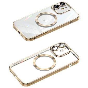 For iPhone 12 MagSafe CD Texture Metal Lens Frame Full Coverage Phone Case(Gold)