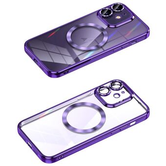For iPhone 12 MagSafe CD Texture Metal Lens Frame Full Coverage Phone Case(Purple)