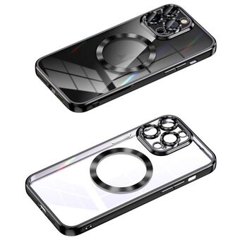 For iPhone 12 Pro MagSafe CD Texture Metal Lens Frame Full Coverage Phone Case(Black)