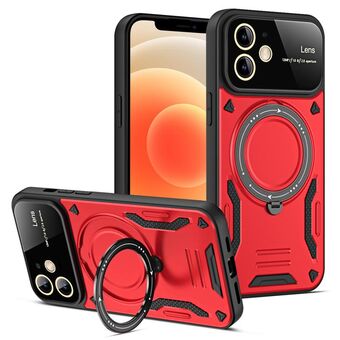 For iPhone 12 Large Window MagSafe Holder Phone Case(Red)