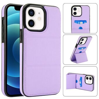 For iPhone 12 Tri-fold Holder Leather Phone Case with Card Slot(Light Purple)