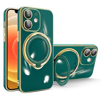 For iPhone 12 Large Window MagSafe Gradient Glitter Electroplating TPU Phone Case(Gold)