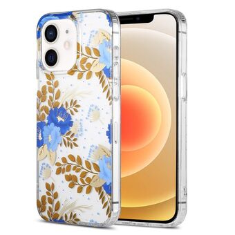 For iPhone 12 Dual-side Laminating IMD PC Hybrid TPU Phone Case(Blue Peony)