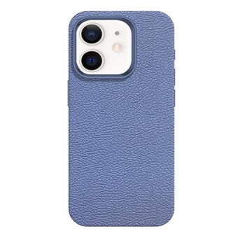 For iPhone 12 Skin Feel Fine Leather Texture Metal Lens Frame MagSafe Phone Case(Dark Blue)