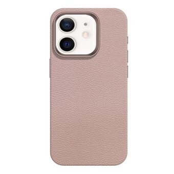 For iPhone 12 Skin Feel Fine Leather Texture Metal Lens Frame MagSafe Phone Case(Brown Gray)