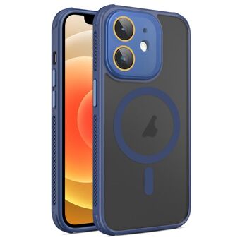 For iPhone 12 Camouflage Ice Feel Texture MagSafe PU Hybrid PC Phone Case(Dark Blue)