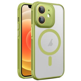 For iPhone 12 Camouflage Ice Feel Texture MagSafe PU Hybrid PC Phone Case(Dark Green)