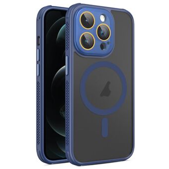 For iPhone 12 Pro Skin Feel Fine Leather Texture Metal Lens Frame MagSafe Phone Case(Dark Blue)