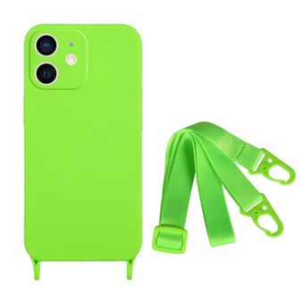 For iPhone 12 Pro Fine Hole Silicone Phone Case with Lanyard(Dark Green)