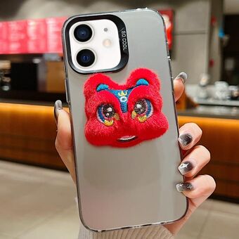 For iPhone 12 New Year Lion Dance Plush Doll Phone Case(Red Back Red Lion)