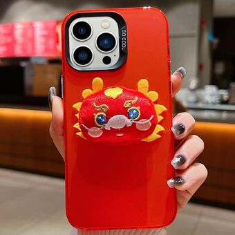 For iPhone 12 Pro New Year Lion Dance Plush Doll Phone Case(Dragon)