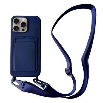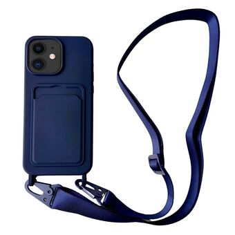 For iPhone 12 Card Slot Liquid Silicone Phone Case with Lanyard(Dark Blue)