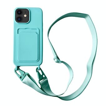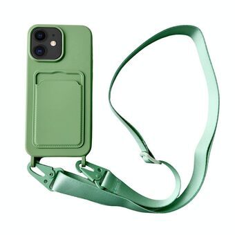 For iPhone 12 Card Slot Liquid Silicone Phone Case with Lanyard(Matcha Green)