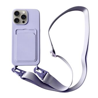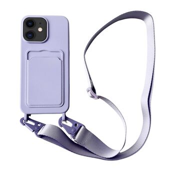 For iPhone 12 Card Slot Liquid Silicone Phone Case with Lanyard(Light Purple)
