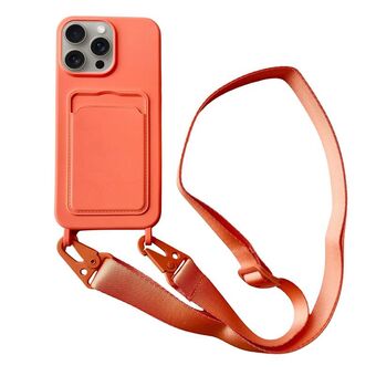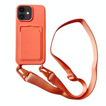 For iPhone 12 Card Slot Liquid Silicone Phone Case with Lanyard(Orange)