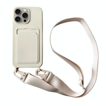 For iPhone 12 Card Slot Liquid Silicone Phone Case with Lanyard(White)