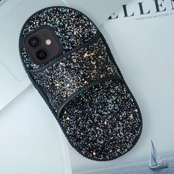 For iPhone 12 Creative Glitter Slipper Design TPU Shockproof Phone Case(Black)