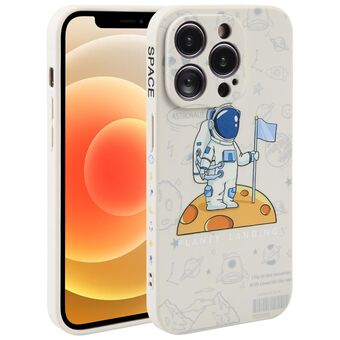 For iPhone 12 Pro Astronaut Pattern Silicone Straight Edge Phone Case(Planet Landing-White)