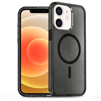 For iPhone 12 Glitter Powder TPU Hybrid PC MagSafe Phone Case(Black)